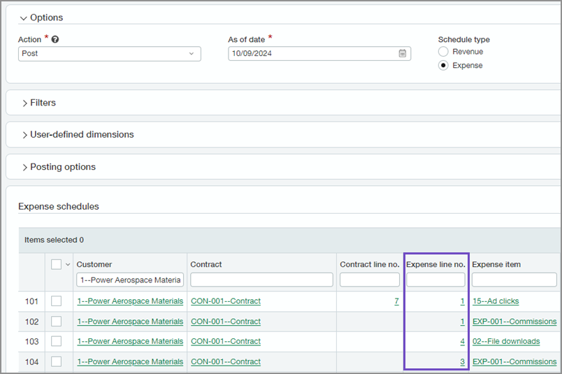 We added the Expense line no. column to the results table for the Post action, making it easier to differentiate between rows. This addition also aligns with the structure of the Expense lines list.