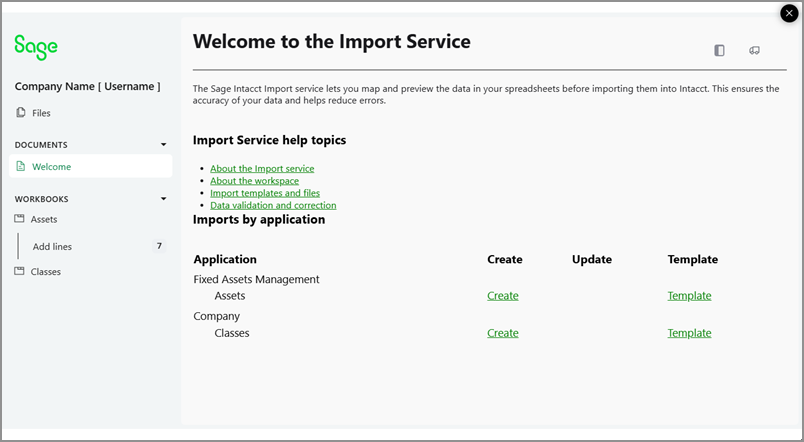 We added a welcome page where you can access help center topics and templates for available imports.